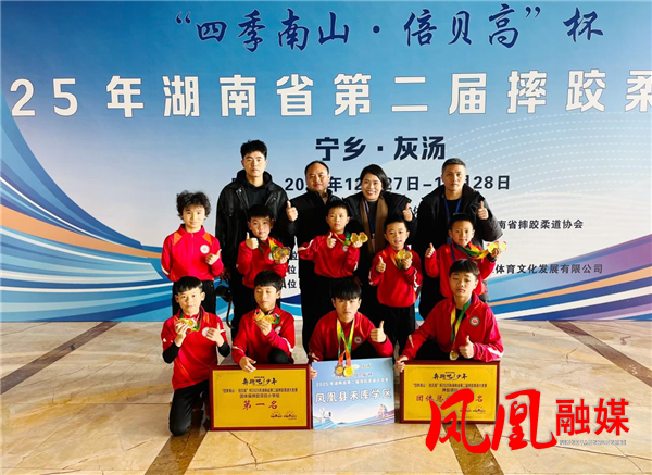 凤凰融媒12月30日讯(记者 肖昕翔 通讯员 龙增莲 吴志德)12月27日至28日,“四季南山・倍贝高”杯2025年湖南省第二届摔跤柔道大奖赛在宁乡市圆满落幕。凤凰县禾库学区9名小学生队员奋勇拼搏、驰骋赛场,一举斩获12金4银3铜共19枚奖牌,其原创集体赛团体操《苗跤战魂》更强势拿下小学组第一名。这是该学区在省级赛场的又一重大突破——此前同年10月在宁乡举行的“2025年湖南省第三届校园摔跤柔道比赛”中,该队伍已斩获1金1银3铜的亮眼成绩,以乡村校园队伍之姿成为省级赛场名副其实的“黑马”。
