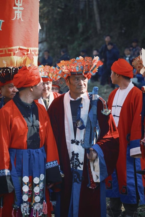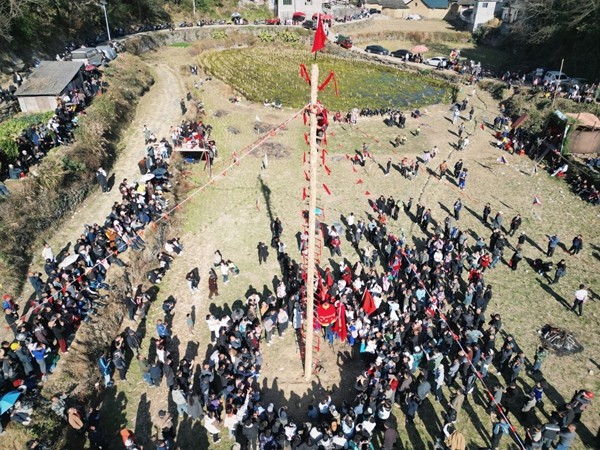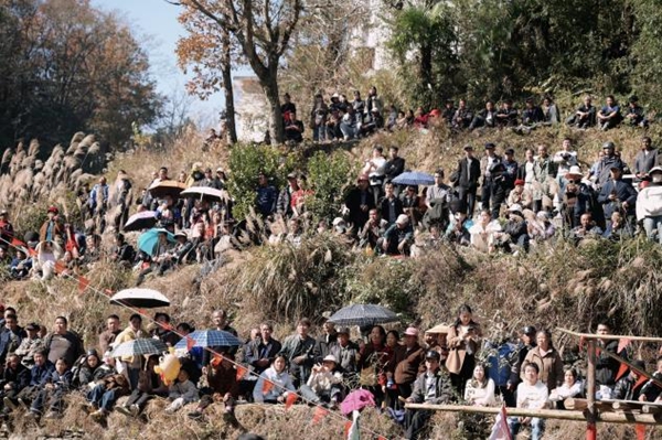 仪式中,巴代师们头戴繁复彩冠,身着红蓝相间的传统服饰,手持法器庄严行祭。最惊心动魄的“上刀山”环节,新巴代赤足攀上寒光闪烁的刀梯,引得围观群众屏息凝神。山坡上、田埂间坐满了专注观看的村民,“以前只在老人嘴里听说的“上刀山”,今天亲眼见到了!”村民吴先生激动地说,“孩子们挤到最前面,比看动画片还专注!”,这充分展现出非遗活动在民间的旺盛生命力。